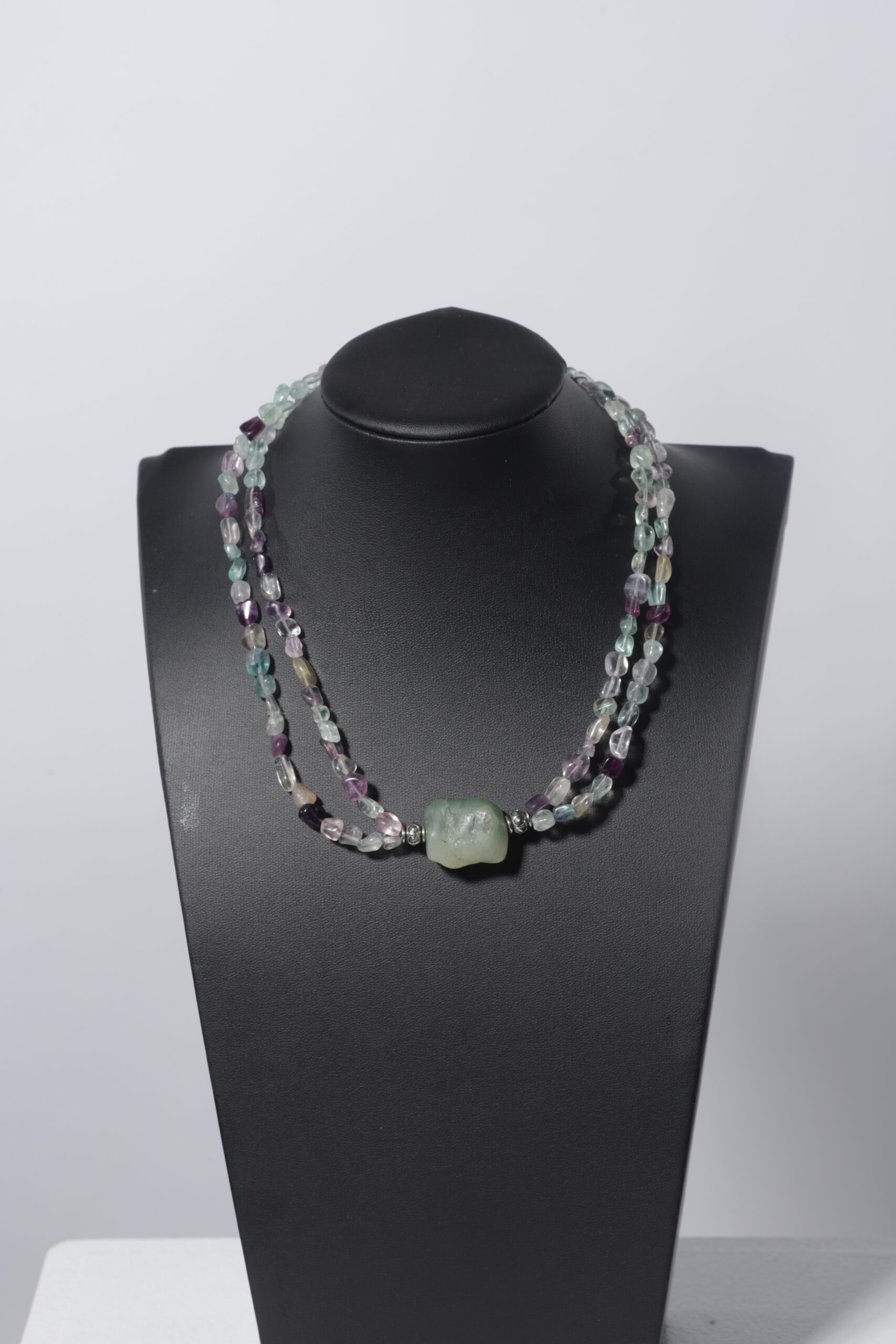 Double row Fluorite nuggets with large Fluorite Rough Stone 15″ with large magnetic closure.